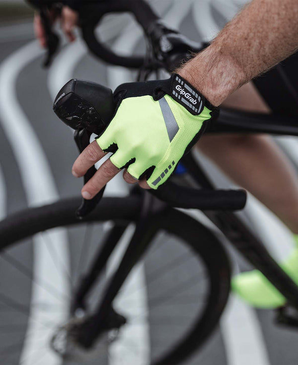 Hi-vis and comfortable summer cycling gloves, constructed from lightweight high performance materials with excellent fit and maximum freedom of movement
